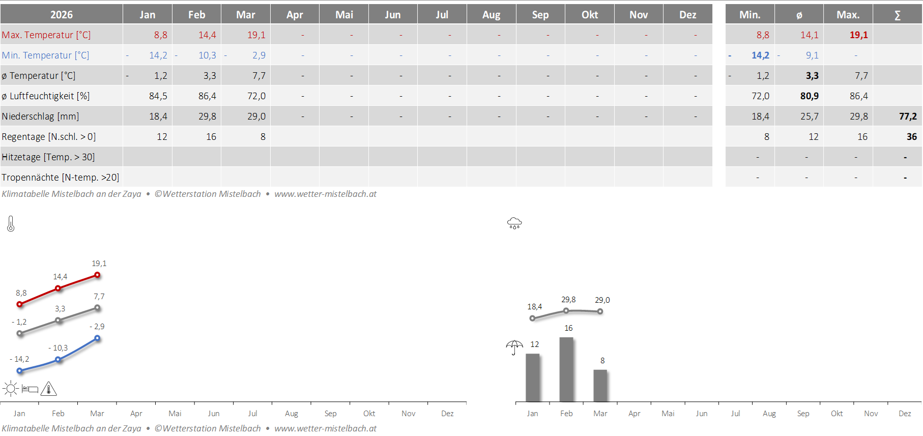 | Die Klimatabellen setzen auf Werte ab 2014 auf. Die dargestellten